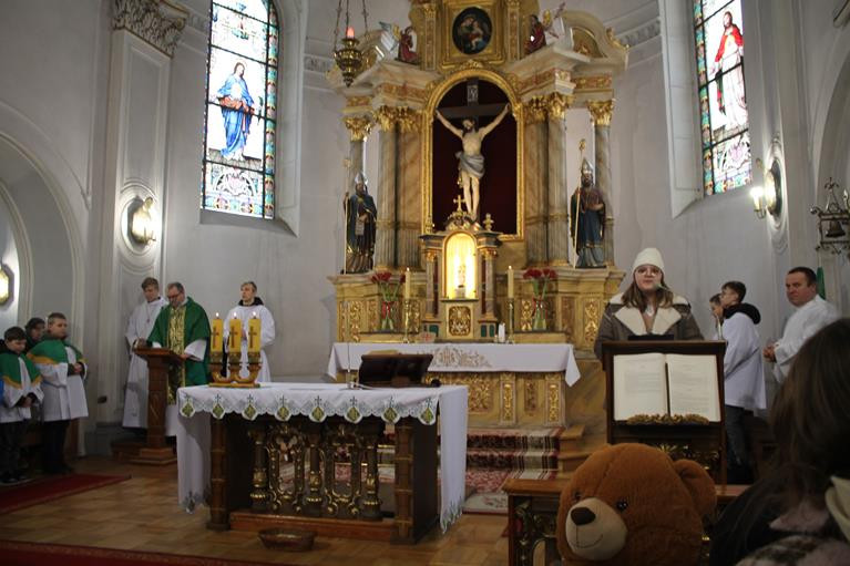 w niedziele i święta:8:00, 10:00, 11:30 (z udziałem dzieci)