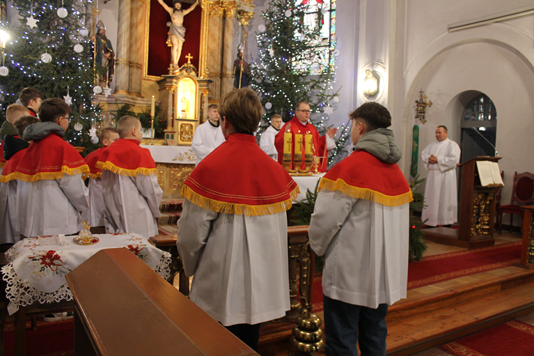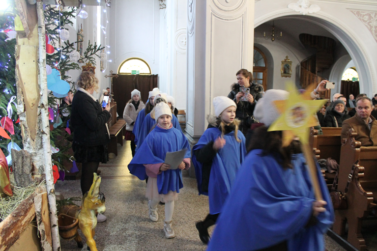 w niedziele i święta:8:00, 10:00, 11:30 (z udziałem dzieci)