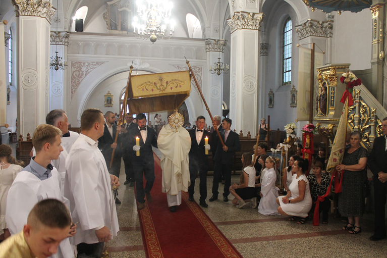 w niedziele i święta:8:00, 10:00, 11:30 (z udziałem dzieci)